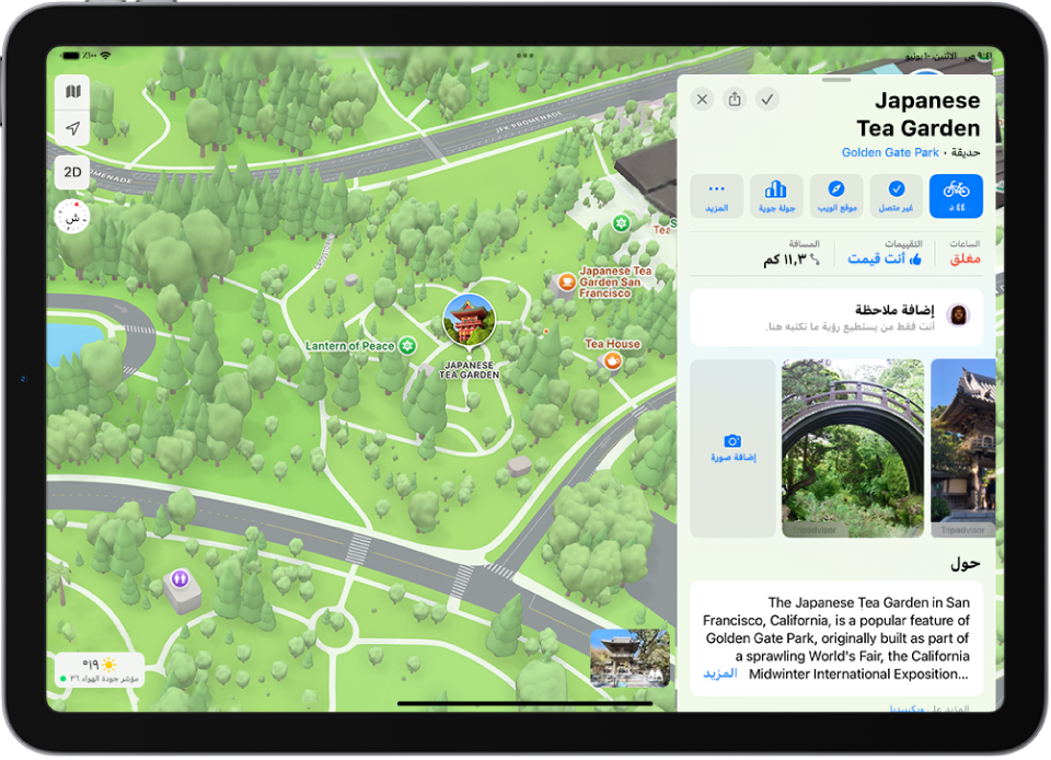 تقييم الأماكن وإضافة الصور في تطبيق الخرائط على iPad