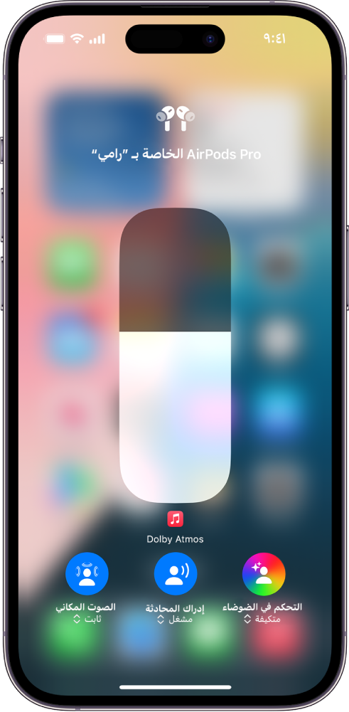 افتح مركز التحكم، اضغط على أيقونة AirPods الموجودة على اليمين (قد تحتاج إلى التمرير إلى الأسفل)، ثم اختر نمطًا من أنماط الاستماع.