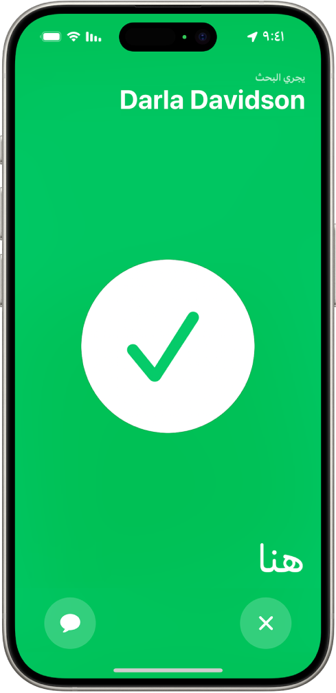 ملاحظة: لا تتوفر ميزة العثور الدقيق في جميع الدول أو المناطق، ويجب أن يكون لديك أنت والصديق الذي تبحث عنه طراز iPhone مدعوم.