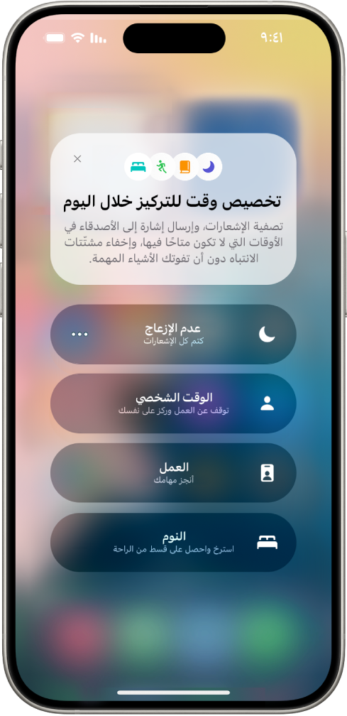 يمكنك استخدام Siri لتشغيل التركيز أو إيقافه.