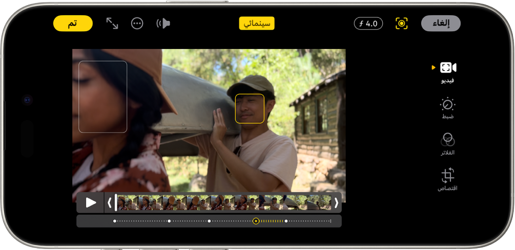 على iPhone.افتح فيديو مسجَّل في نمط السينمائي، ثم اضغط على