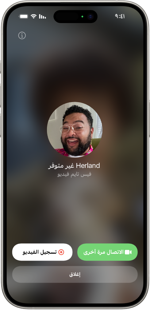 إذا لم يرد أحد على مكالمة فيس تايم فيديو، يمكنك تسجيل رسالة فيديو لتوصيل ما تريد قوله بالضبط.