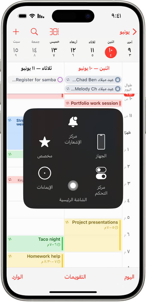 الوصول إلى مركز التحكم أو الإشعارات أو شاشة القفل أو مُبدّل التطبيقات