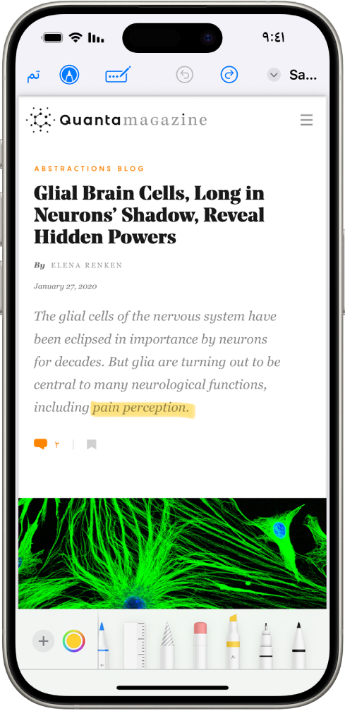إضافة تعليق توضيحي وحفظ صفحة الويب كملف PDF في سفاري على iPhone