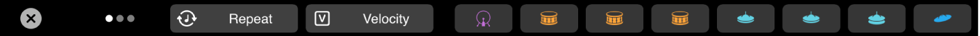 When you tap the Drum Pads button, you can use the Touch Bar to play the drums on a Drummer or software instrument track with a drum kit patch.