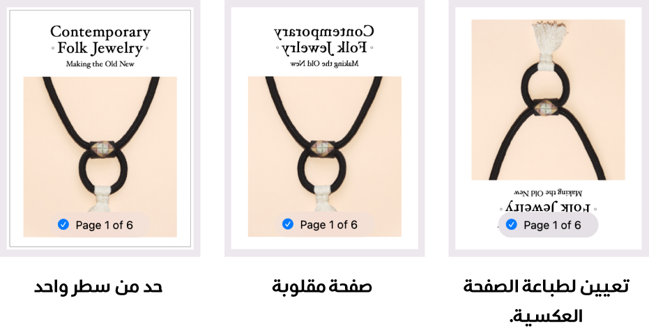 يمكنك طباعة صفحات أو صور مقلوبة أفقيًا، مما ينتج مظهرًا مشابهًا لصورة في المرآة.