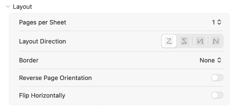 طباعة الصفحات بالحدود أو بصور مقلوبة أو بشكل مقلوب على Mac