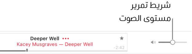 للتحكم في مستوى الصوت، استخدم شريط تمرير مستوى الصوت الموجود في الجزء العلوي من Apple Music (أو اضبط مستوى صوت النظام).