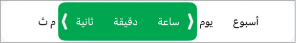 على يسار المدة.لإظهار أو إخفاء عناوين وحدات الوقت، اضغط لتحديد أحد الخيارات أسفل التنسيق: