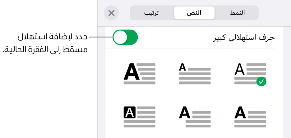 ، ثم شغِّل الإعداد "استهلال مسقط" في أسفل قائمة النص.