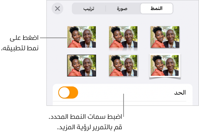 يمكنك تغيير مظهر كائن عن طريق تعديل الميزات الفردية للكائن - كلون تعبئته، حده، ظله، والمزيد - أو يمكنك تغيير المظهر العام للكائن سريعًا عن طريق تطبيق نمط كائن مصمم مسبقًا عليه. أنماط الكائن هي عبارة عن تركيبات من السمات التي تم تصميمها لتتماشى مع القالب الذي تستخدمه.