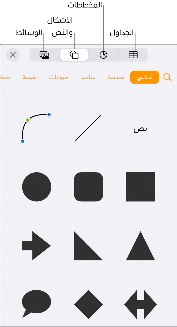 . لكل كائن خيارات التنسيق الخاصة به؛ عندما تقوم بتحديد شكل، على سبيل المثال، يمكنك رؤية عناصر التحكم الخاصة بتنسيق الأشكال فقط.