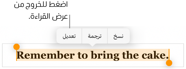 في أعلى الشاشة.التبديل إلى عرض التحرير والنص محدد: اضغط على تحرير في القائمة التي تظهر.