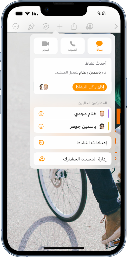 يمكنك دعوة الآخرين للعمل معك على المستند الخاص بك. يستطيع كل شخص تدعوه أن يرى التغييرات عند إجرائها، لكن يمكنك التحكم في تحديد من يمكنه تحرير المستند أو عرضه فقط.