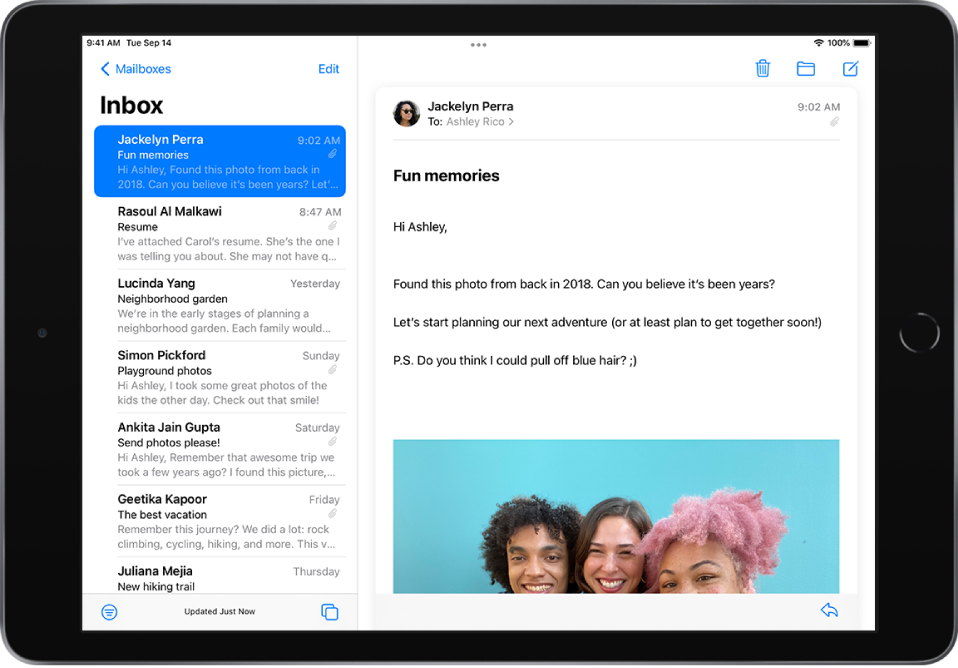 التحقق من البريد الإلكتروني في تطبيق البريد على iPad