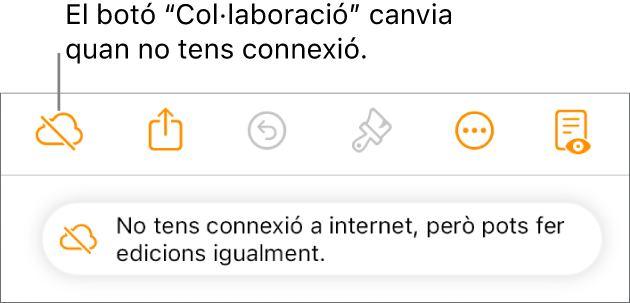 Si la imatge del botó “Col·laboració” canvia a un núvol amb una línia diagonal a sobre, vol dir que el dispositiu no té connexió.