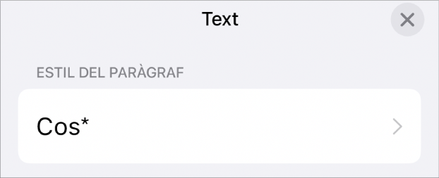 Toca fora dels controls per tancar-los o per tornar a la primera pàgina dels controls de text, toca Enrere i, després, toca Text.