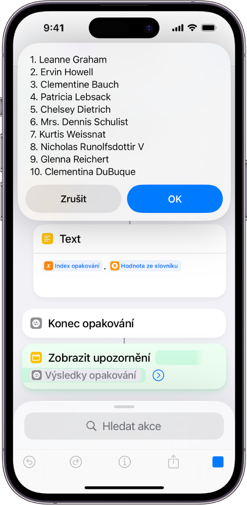 Zpracování seznamů ve Zkratkách na iPhonu nebo iPadu