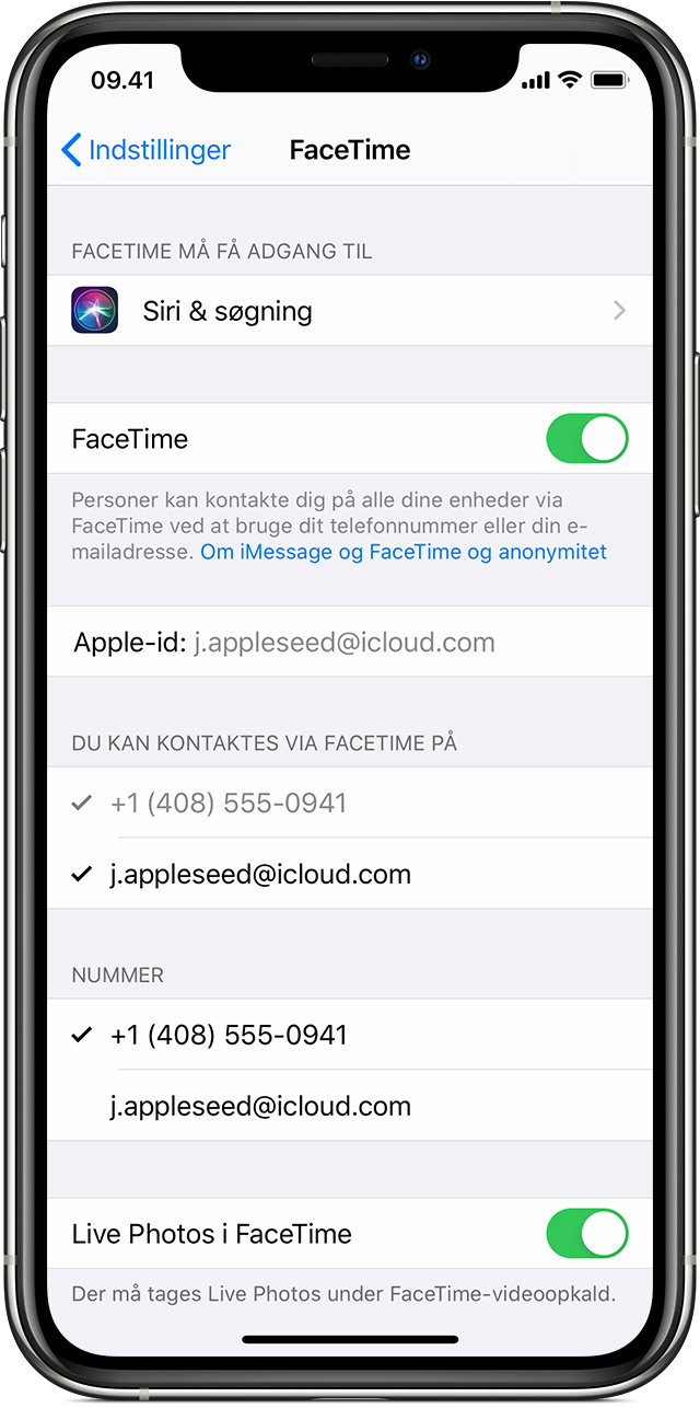 - Læs mere om, hvad du skal gøre, hvis du ikke kan foretage eller modtage et FaceTime-opkald.