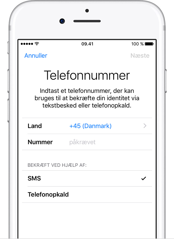 Når du trykker på Næste, sender Apple en godkendelseskode til det telefonnummer, du har oplyst.