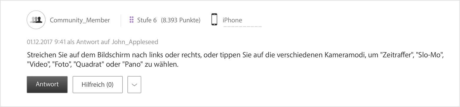 Unterstütze hilfreiche Community-Mitglieder durch das Markieren von Antworten, die zur Lösung deines Problems beigetragen haben. Hierdurch erhalten die entsprechenden Mitglieder Punkte, wodurch sich ihr Rang innerhalb der Community erhöht. Auch wird es so für andere Mitglieder einfacher, hilfreiche Antworten zu finden.