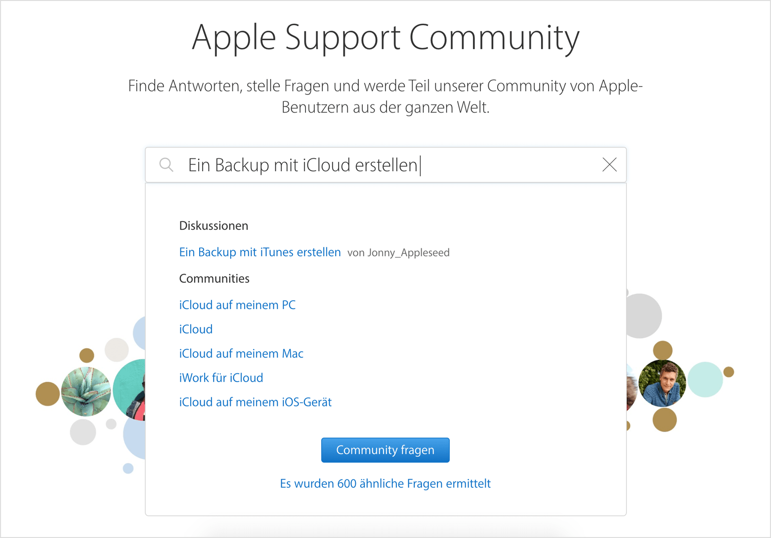 - Wenn du keine Antwort auf deine Frage findest, klicke auf "Community fragen". Stelle sicher, dass du mit deiner Apple-ID angemeldet bist.