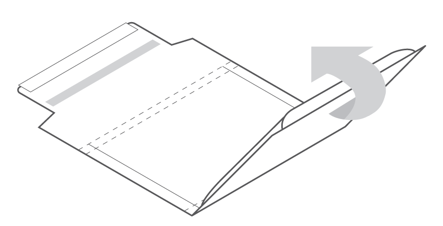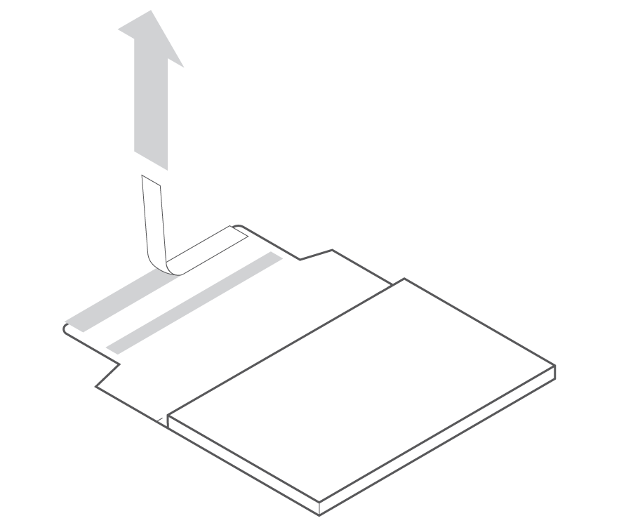 - Entferne den Klebestreifen von der offenen Lasche des Versandkartons. Falte die offene Lasche des Versandkartons um, und drücke sie entlang der freigelegten Klebefläche fest an.*