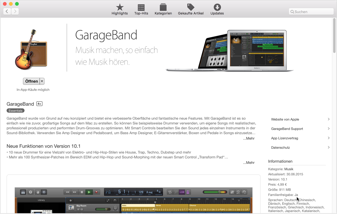 Die Verfügbarkeit von iTunes-Inhalten und Apple Music ist von Ihrem Land abhängig.
