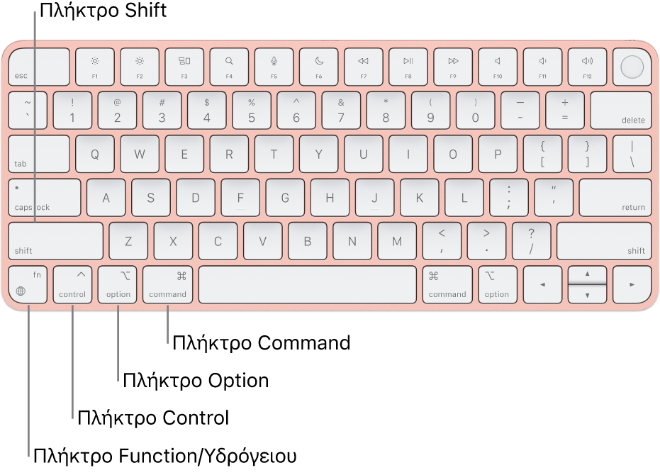 Σημείωση: Αν έχετε Apple Magic Keyboard με Touch ID και αριθμητικό πληκτρολόγιο, το πλήκτρο Function/Υδρογείου βρίσκεται στα δεξιά του πλήκτρου Delete.