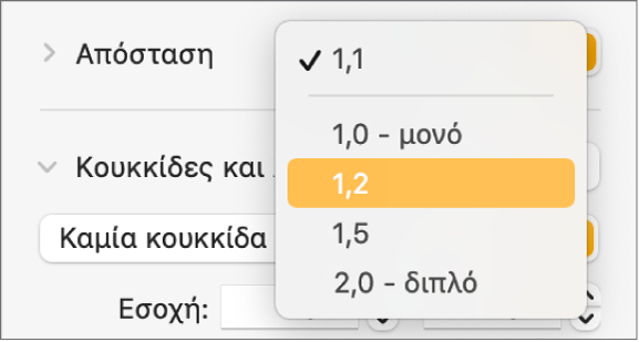 Μπορείτε να αυξήσετε ή να μειώσετε την απόσταση μεταξύ γραμμών κειμένου και να αλλάξετε την απόσταση πριν ή μετά από μια παράγραφο.