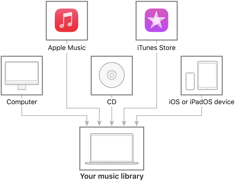 As you start using Music on your Mac, you can build your music library—your collection of songs and albums—in many ways.