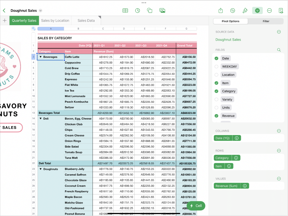Use pivot tables to quickly summarise, group and rearrange data to explore patterns and trends with pivot tables.