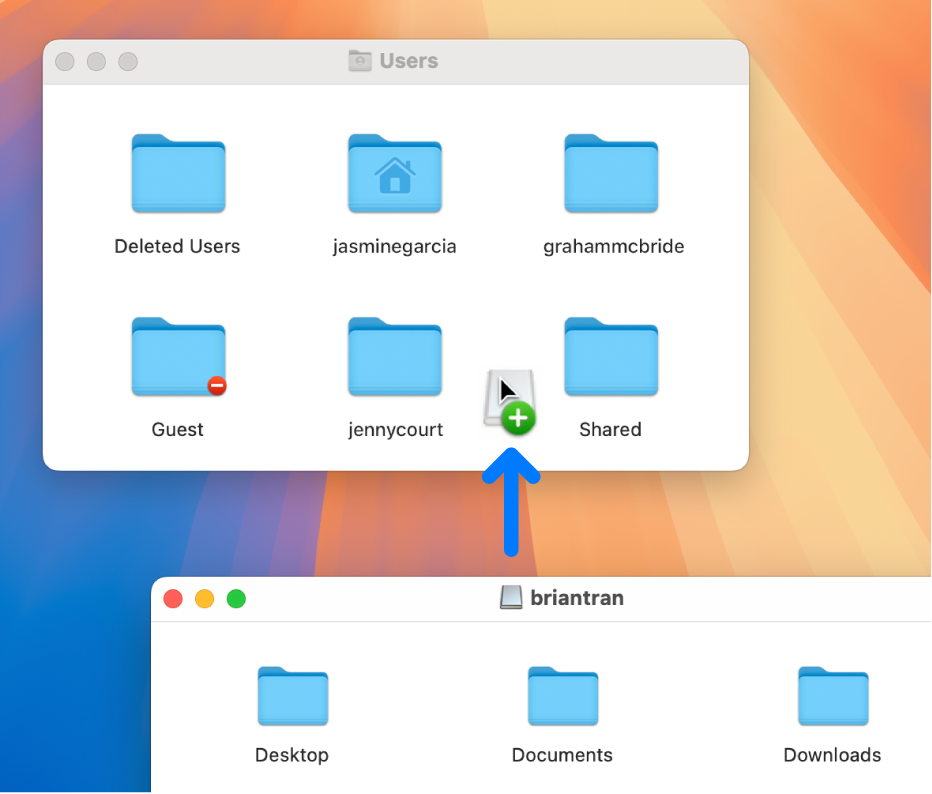 on your Mac, choose Go > Go to Folder, enter /Users/Deleted Users, then press Return.Open the disk image file for the deleted user’s home folder.