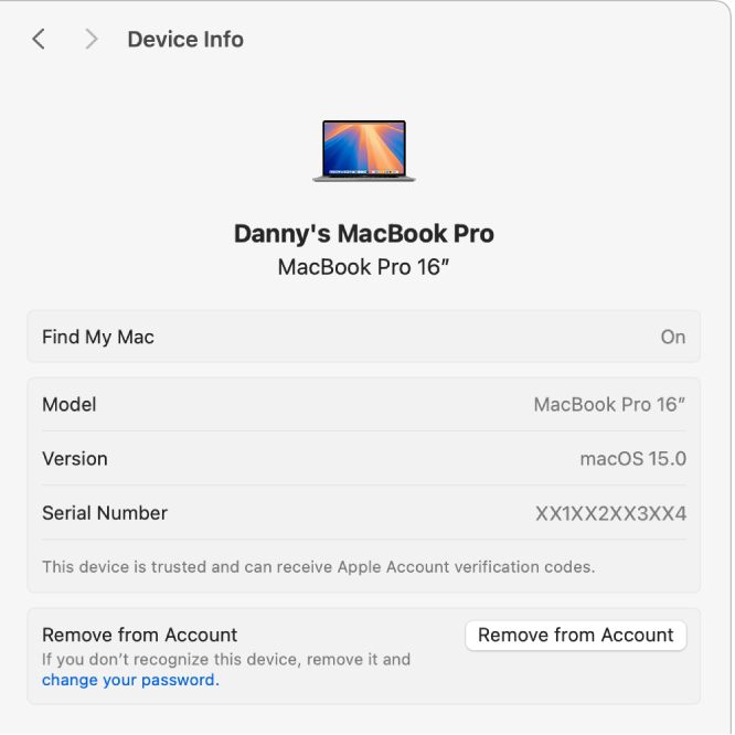 You can review the trusted devices that use your Apple Account in the Devices list in Apple Account settings.