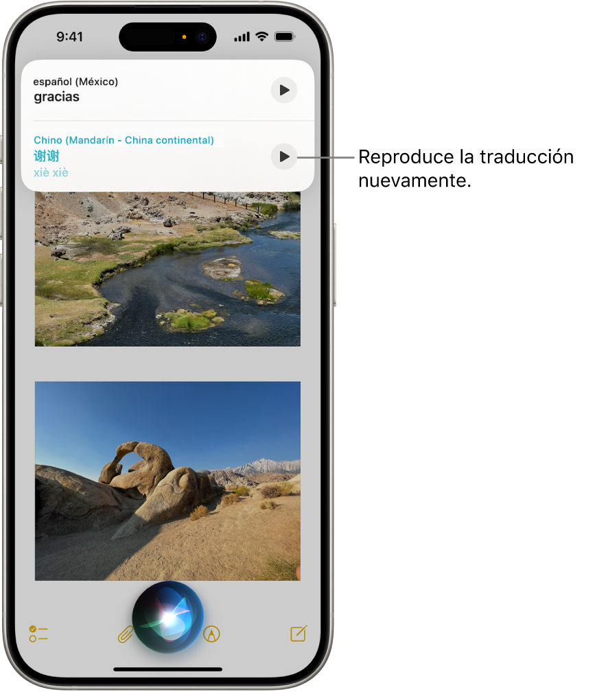 Pídele a Siri que escriba o traduzca una palabra, realice cálculos, obtenga información de Internet y más.