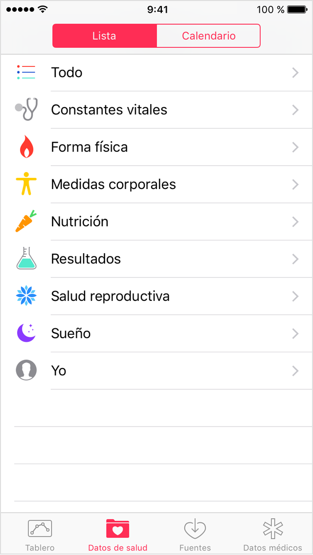 Seleccionar qué apps compartirán información con Salud