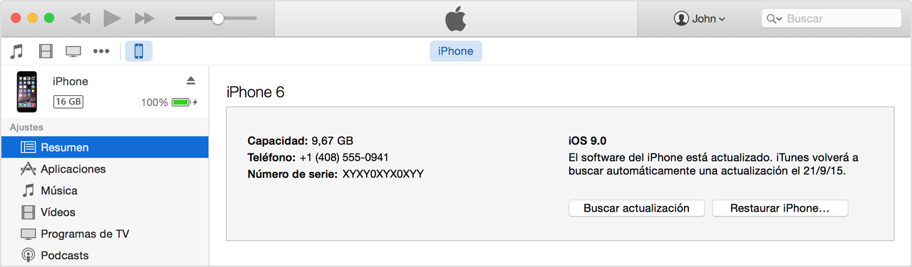 También puedes encontrar el número de serie de tu dispositivo en iTunes: