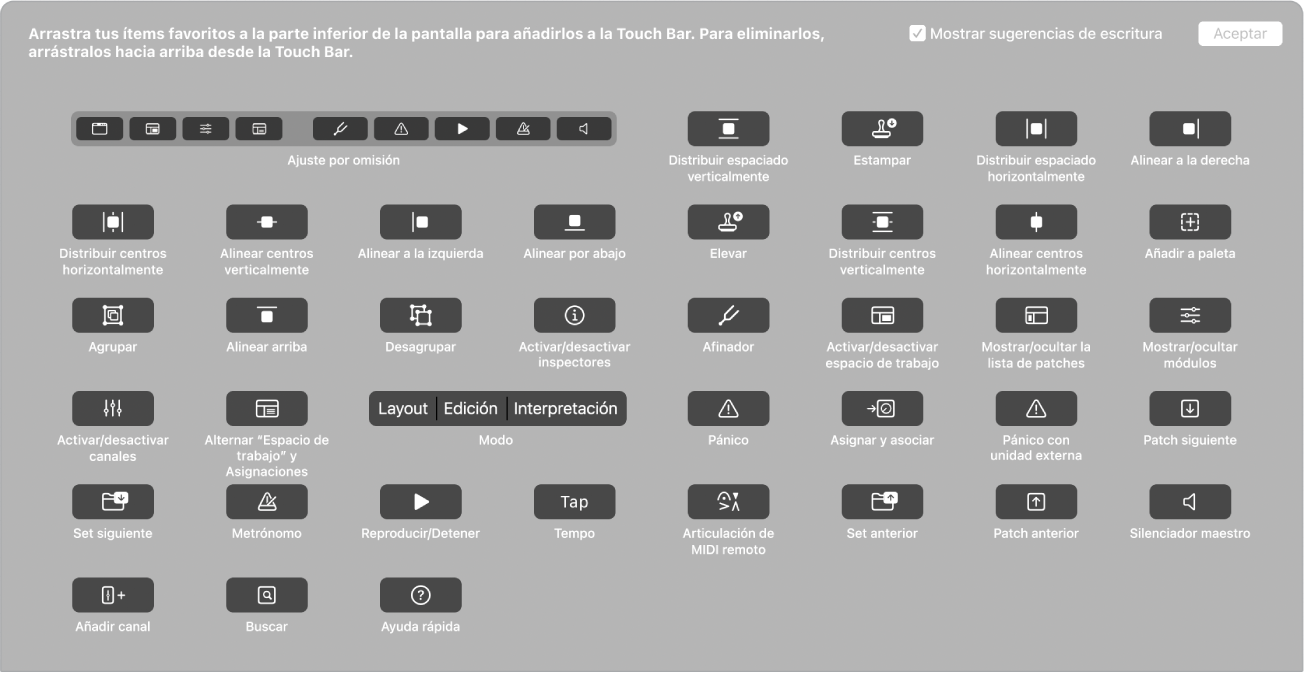 Personalizar la Touch Bar en MainStage