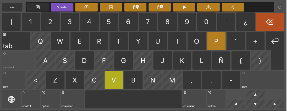 Eliminar botones: Arrastra el botón de un comando de teclado fuera de la Touch Bar virtual.