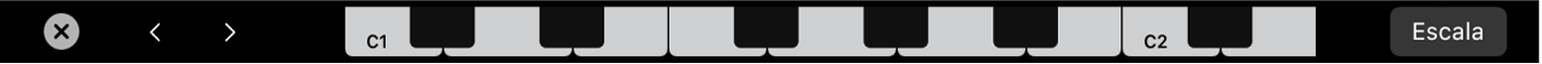 Para ajustar el intervalo de octavas del teclado de la Touch Bar, pulsa uno de los botones de “Octava del teclado” a la izquierda del teclado de la Touch Bar.