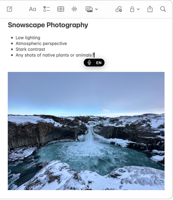 En una app en tu Mac, coloca el punto de inserción donde quieras ingresar texto.
