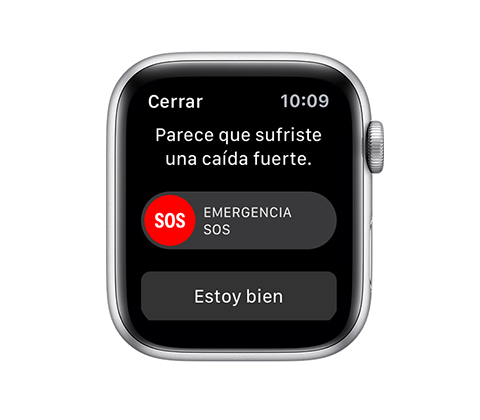 El Apple Watch Series 4 y versiones posteriores pueden ayudarte a realizar una llamada de emergencia si alguna vez sufres una caída fuerte. Si no puedes moverte, el Apple Watch automáticamente llama a los servicios de emergencia y, luego, envía un mensaje con tu ubicación a tus contactos de emergencia.