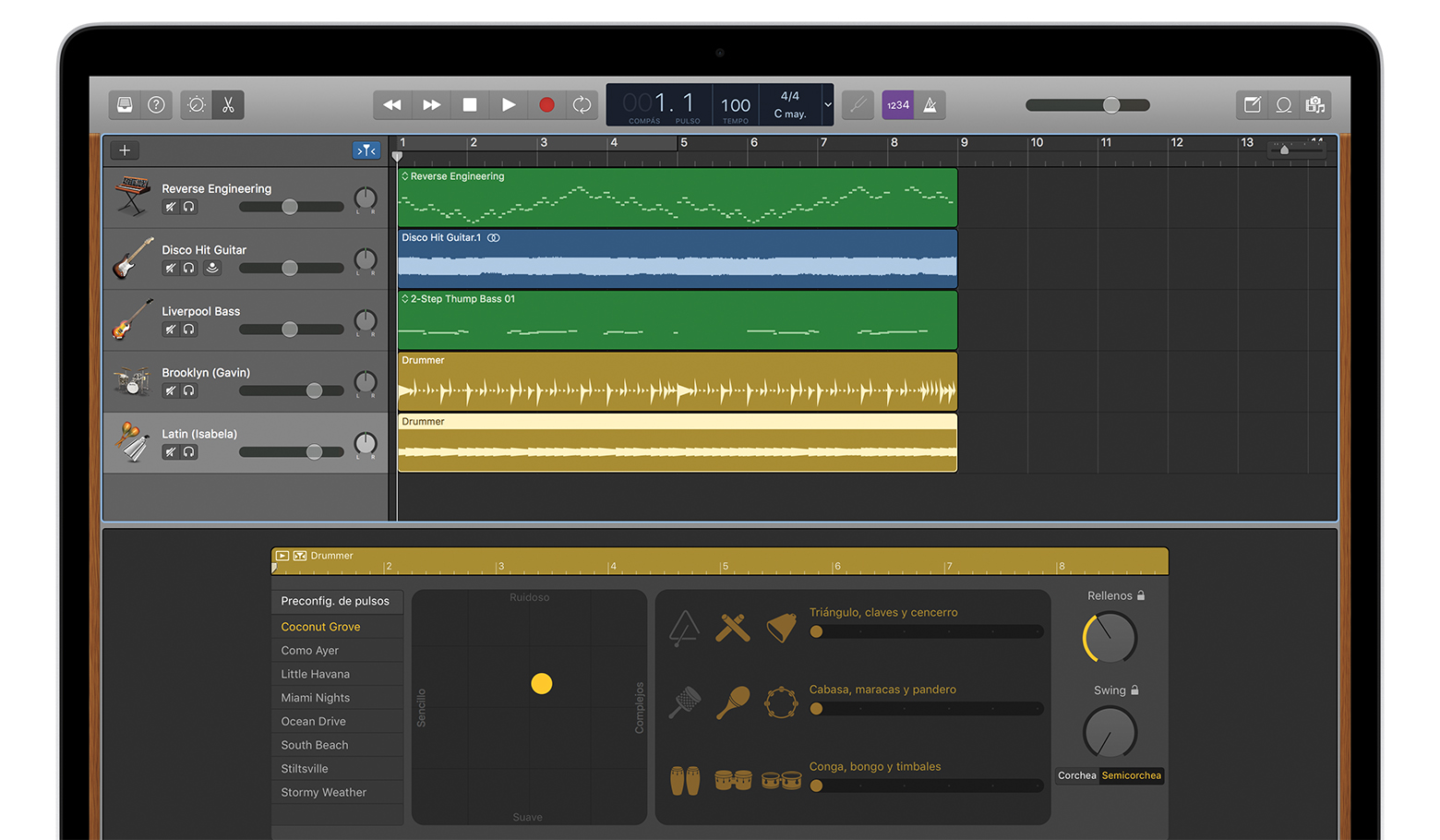 Obtén información sobre cómo agregar sonidos de percusión a tu canción de GarageBand con Drummer.