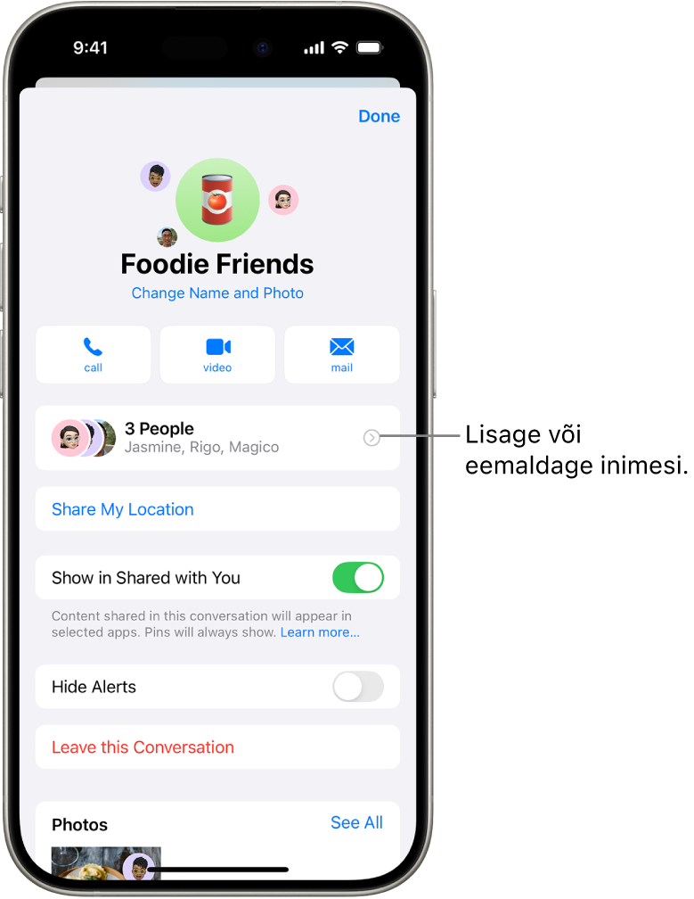 Operatsioonisüsteemis iOS 26 või uuemas saate lisada grupivestlustesse uusi tutvustatud kontakte. Vt. Kontakti loomine.