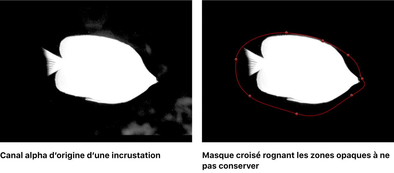 Convertir en points : bouton (disponible dès qu’un masque simple est sélectionné), qui permet de convertir ce masque simple en masque complexe doté de points de contrôle modifiables. Consultez Conversion d’une forme ou d’un masque en points de contrôle.