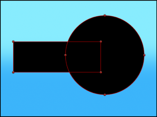 Ajouter : supprime tous les pixels des zones situées en dehors de la forme d’un masque. Chaque nouveau masque ajoute plus de transparence et laisse transparaître un peu plus de l’image sous-jacente. Le mode de fusion Ajouter (état par défaut des nouveaux masques) est utile pour ajouter à nouveau des parties d’image éliminées par d’autres masques ou pour masquer plusieurs zones qui ne sont pas en intersection sur une seule image. Dans l’exemple suivant, le masque rectangulaire et le masque circulaire suppriment tous deux des zones en dehors des formes de masque pour dévoiler le canevas noir sous-jacent.