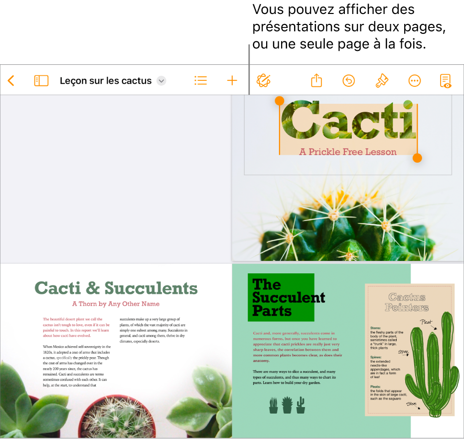 , touchez Options du document, puis touchez Mise en page.Touchez l’onglet Document en haut de l’écran, puis activez Pages opposées.