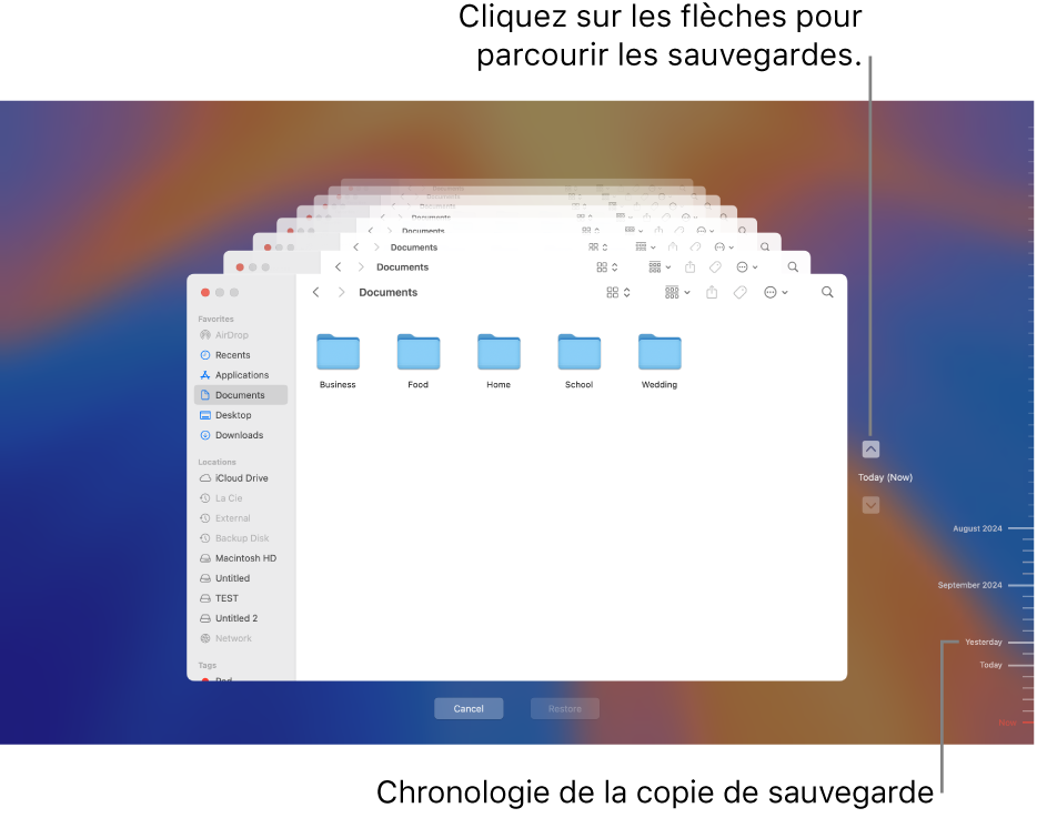 Si vous supprimez ou modifiez accidentellement un fichier, vous pouvez utiliser Time Machine pour le récupérer.