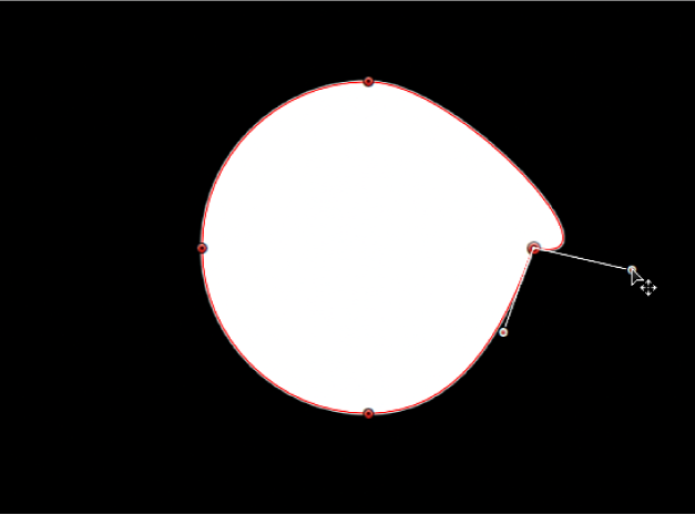 Important : si le bouton Enregistrer (dans la barre d’outils de synchronisation) est activé, les ajustements de courbe sont animés avec des images clés, créant ainsi des modifications de forme animées. De plus, si une image clé est ajoutée au paramètre Points de contrôle dans la fenêtre Géométrie de l’inspecteur de forme, les modifications de courbe sont animées par images clés, que la fonctionnalité d’enregistrement soit activée ou non.