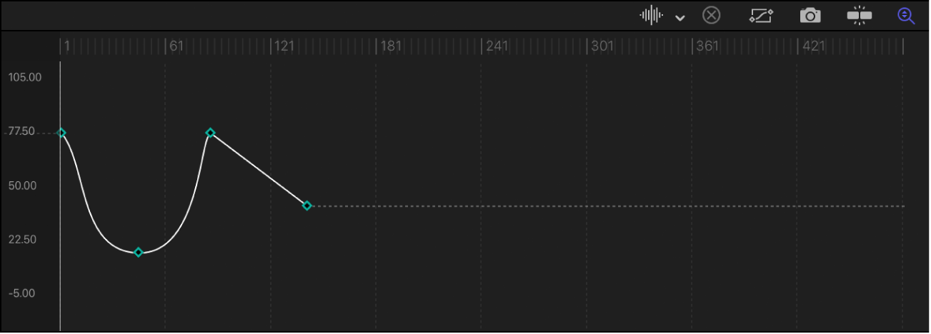 Les options d’extrapolation suivantes sont disponibles dans les sous-menus « Avant la première image clé » et « Après la dernière image clé ». (Dans chacun des exemples illustrés ci-dessous, le réglage d’extrapolation est appliqué après la dernière image clé.)